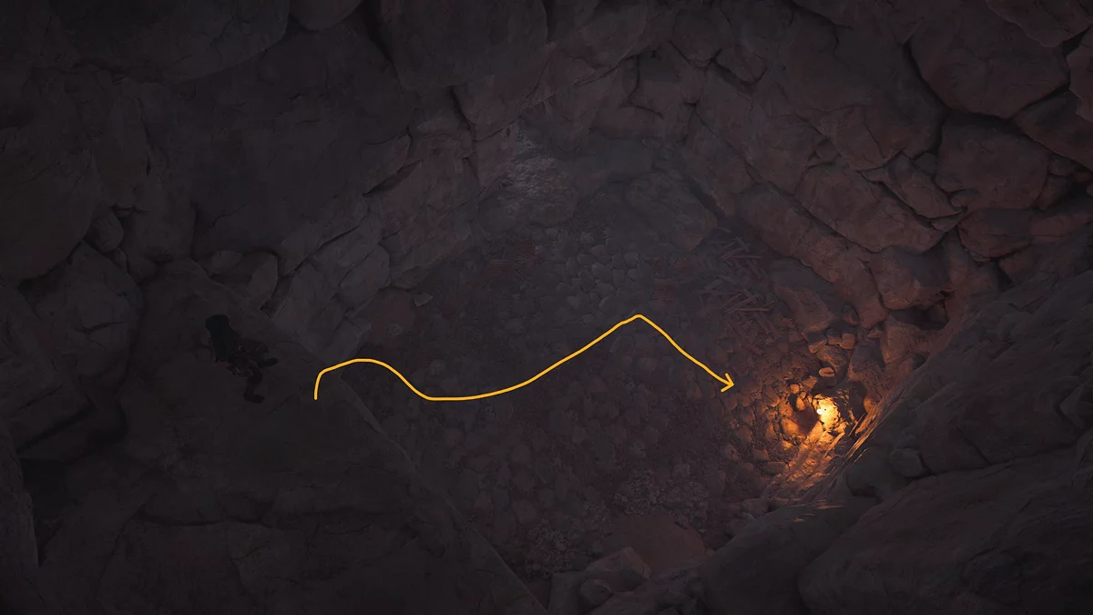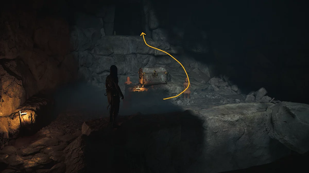 一座大型淹没的洞穴将在你面前展开。首先,探索右侧以找到一个匣子,然后直行穿过洞穴。在发现刺客的箱子后,向左转并继续前往下一个缝隙。