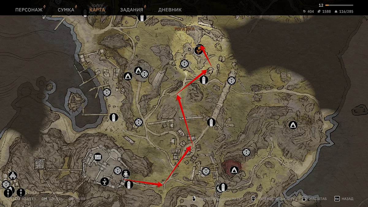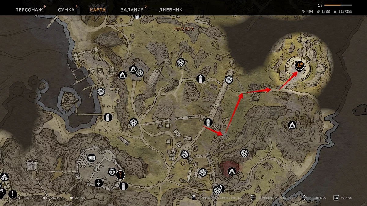 离开堡垒,前往废墟市场,穿过“皇家之路”快速旅行石左侧的缺口。向西北方向移动,绕过“拱顶”。