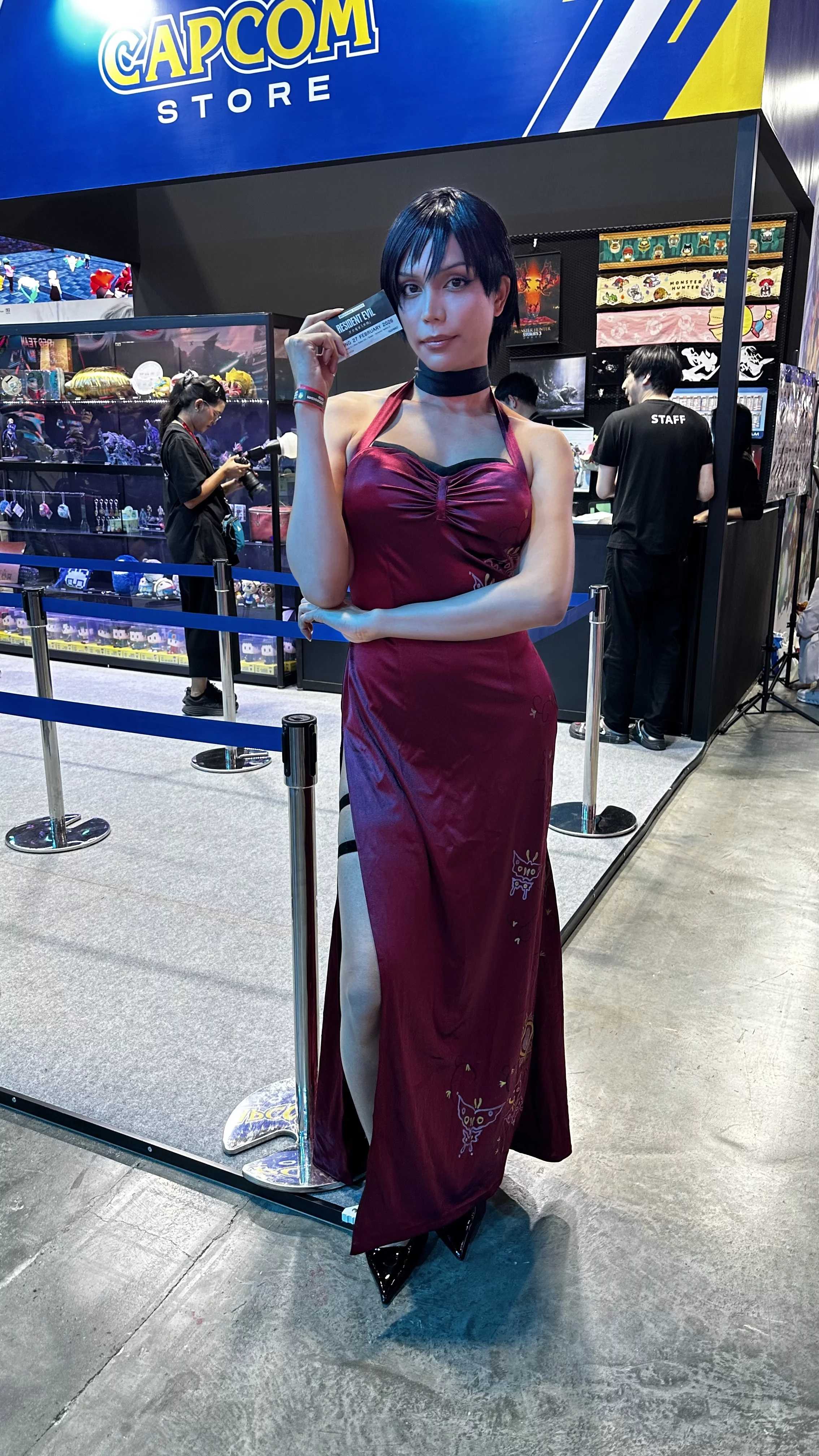 艾达·王穿着来自 生化危机4的晚礼服。有趣的是,她选择了2005年原版游戏中的造型,而不是重制版。