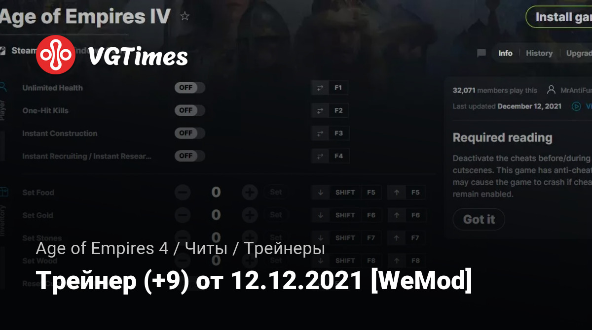 • Age of Empires 4 — Трейнер (+9) от 12.12.2021 [WeMod]