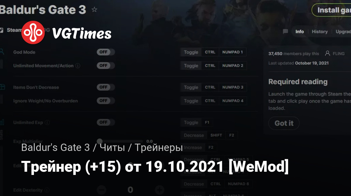 • Baldur's Gate 3 — Трейнер (+15) от 19.10.2021 [WeMod]