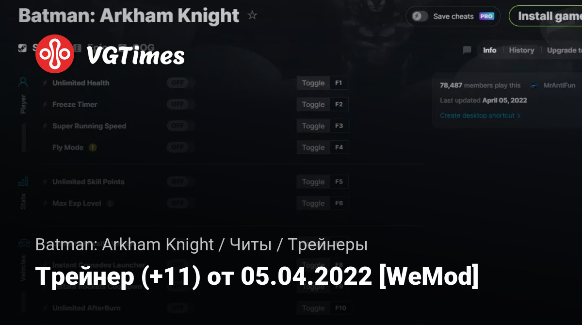 Для использования трейнера необходима установка системы WeMod (требуется онлайн подключение).