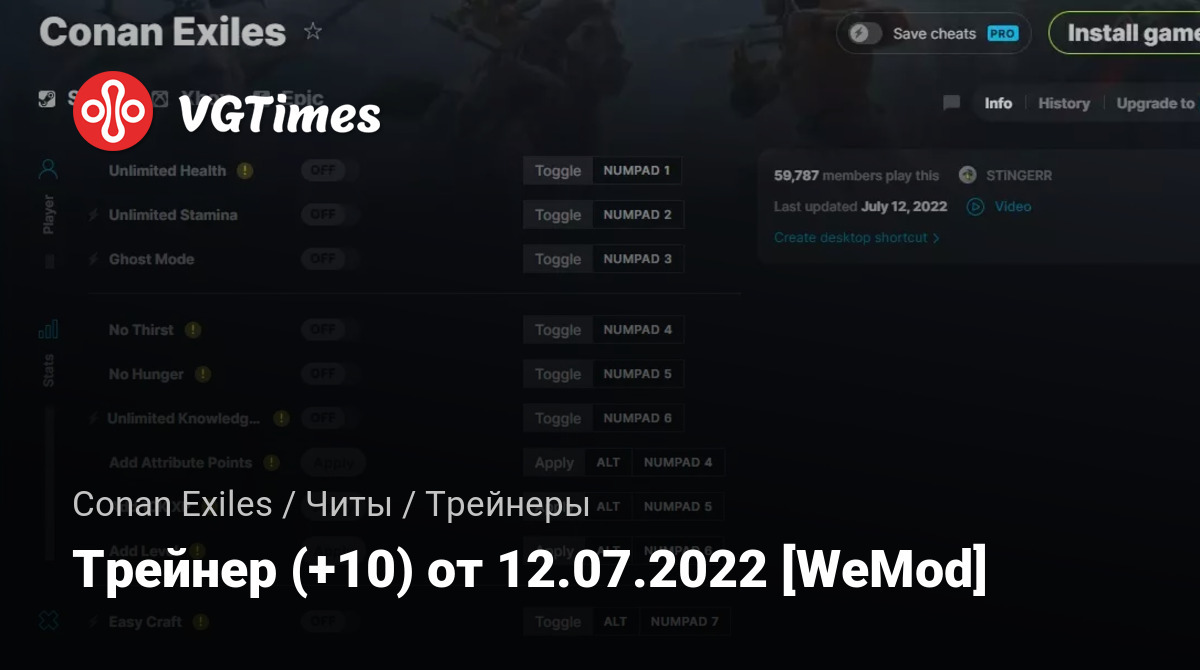 • Conan Exiles — Трейнер (+10) от 12.07.2022 [WeMod]