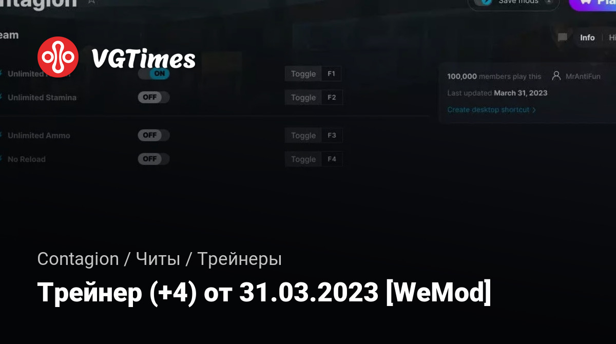 • Contagion — Трейнер (+4) от 31.03.2023 [WeMod]