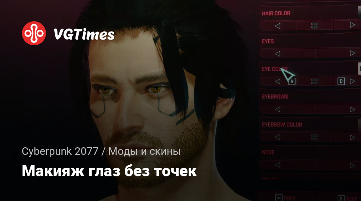 Макияж глаз под номером 1 без точек. Установка: поместите файл archive в папку mod. Если она не существует, создайте ее самостоятельно! /Cyberpunk 2077/archive/pc/mod.