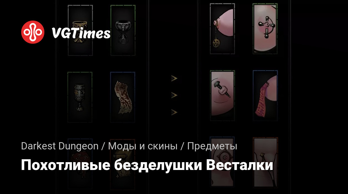 Это небольшой мод, изменяющий внешний вид и названия безделушек героев Весталки. Зачем таскать с собой тяжелые чаши, свитки и другие громоздкие вещи, если их можно заменить на модный пирсинг? Итак, этот мод заменяет стандартные Брелоки Героев (точнее, те, которые являются эксклюзивными для Вестал) на извращенный пирсинг. Моя главная цель состояла в том, чтобы сделать его дружественным к истории (без анахронической чуши) и по возможности добавлять тонкие отсылки к оригинальным безделушкам. Я изменил только визуальные эффекты и названия, все эффекты остались прежними. Для установки просто распакуйте архив в папку с модом и активируйте его в игре.