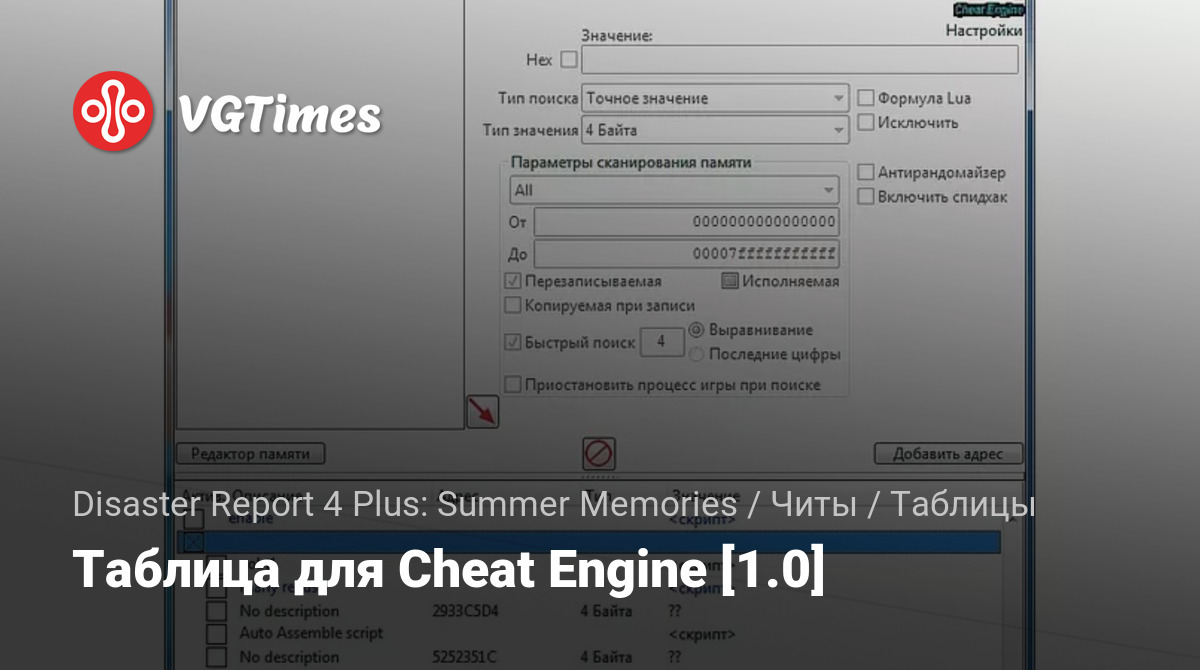 • Disaster Report 4 Plus: Summer Memories — Таблица для Cheat Engine [1.0]