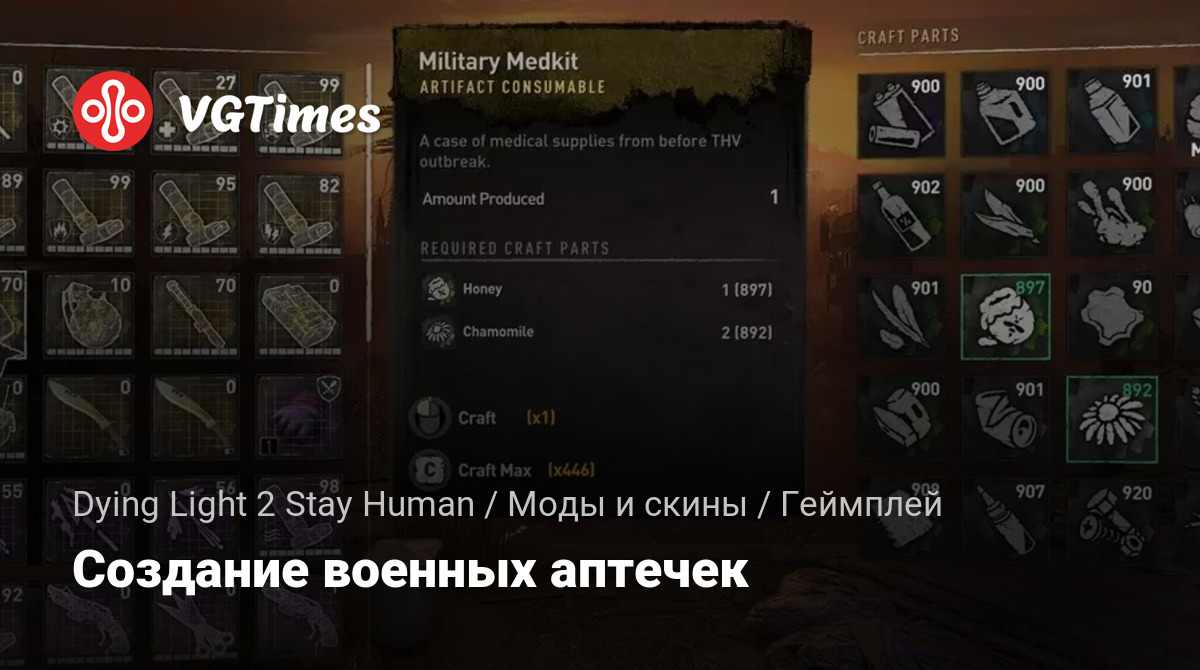 Этот мод превращает последнее обновление лекарства, также известного как повязка, в аптечку. Теперь, когда вы улучшите свой чертеж бинта до макс, вы сможете создавать военные аптечки.
