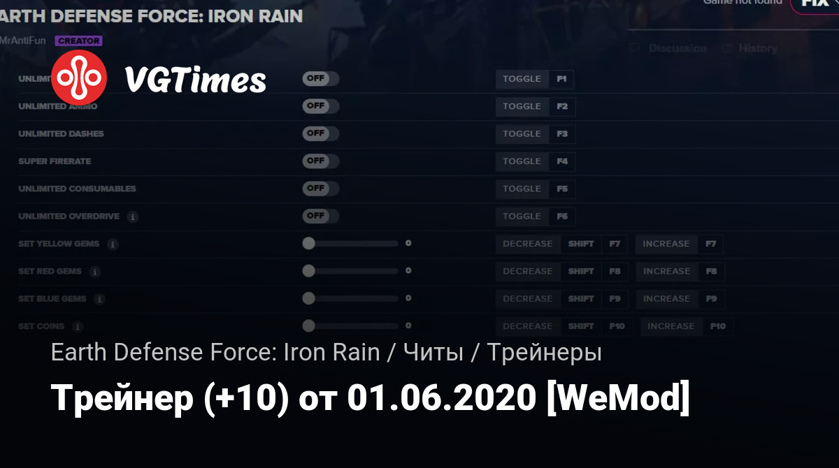 • Earth Defense Force: Iron Rain — Трейнер (+10) от 01.06.2020 [WeMod]