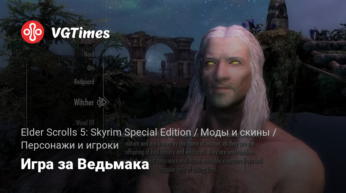 Этот мод добавляет Ведьмака в качестве новой расы в игру. С несколькими новыми связанными знаками и некоторыми совершенно новыми заклинаниями. SKSE является обязательным, и рекомендуется добавлять этот мод только в новую игру.