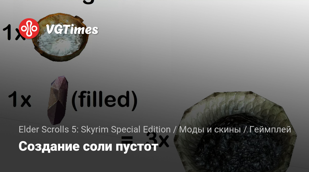 Это должен быть простой мод, который даст вам возможность создать свою собственную соль пустоты с обычной кучей соли и заполненным мелким камнем души. Потому что соль пустоты встречается слишком редко.