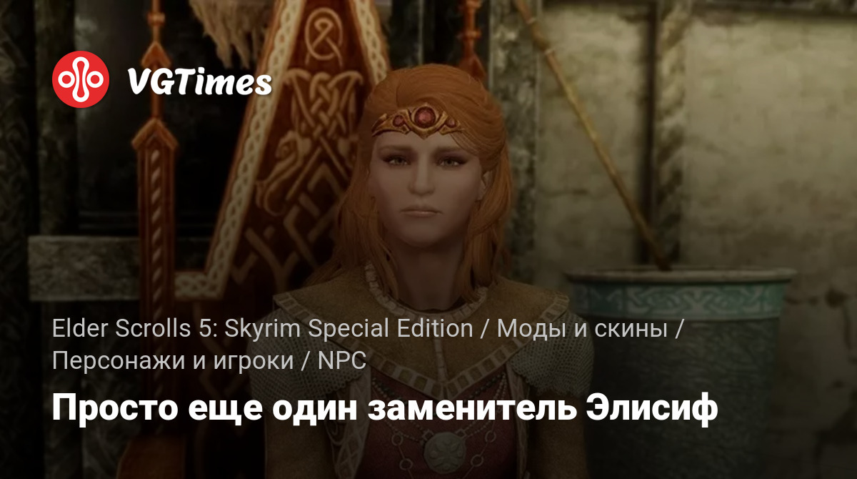 Просто еще один заменитель Элисиф. Помечен как esl. Установить с помощью менеджера модов. Автор сделал варианты разрешения кожи для каждого типа тела (1K, 2K, 4K для UNP/CBBE/Vanilla), поэтому размер файла стал немного большим.
