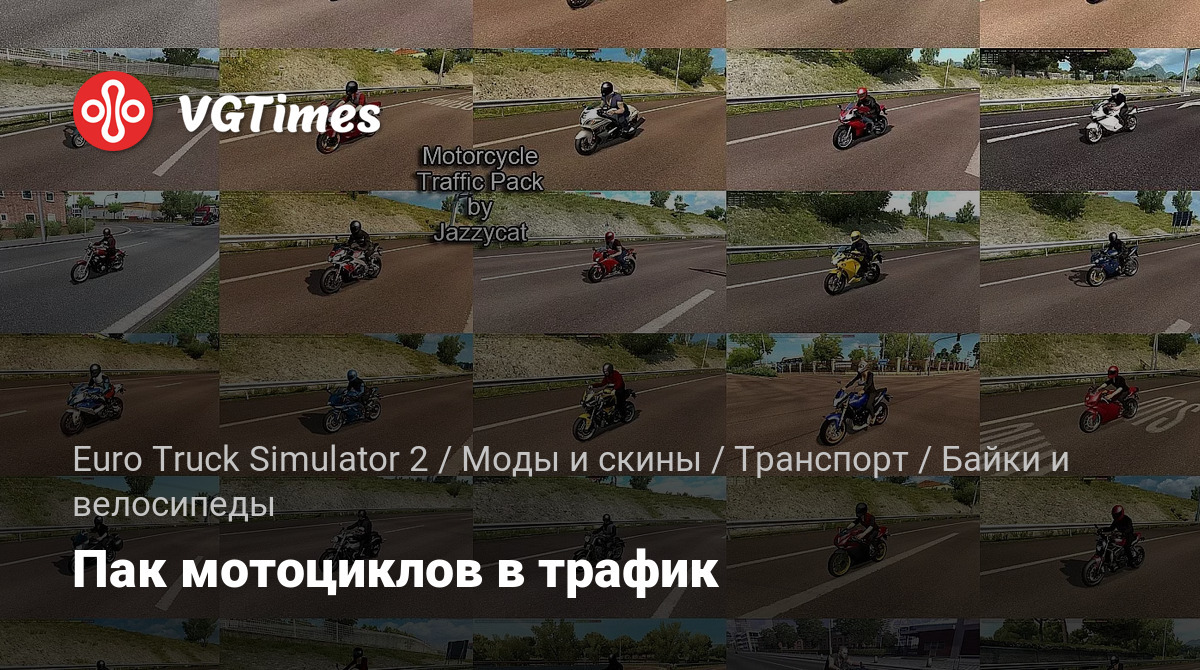 Пак добавляет в трафик 42 мотоцикла. Мод ничего не заменяет и полностью совместим с любыми картами.