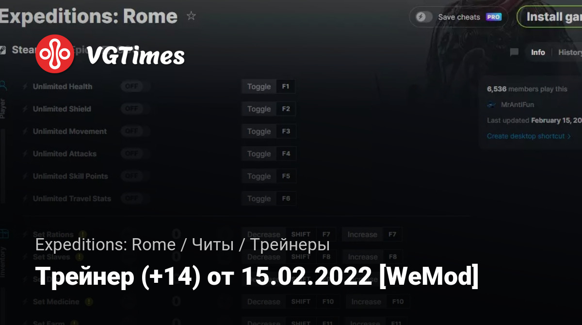 Для использования трейнера необходима установка системы WeMod (требуется онлайн подключение).