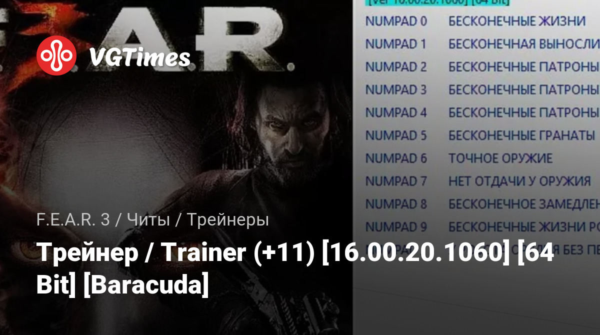 • F.E.A.R. 3 — Трейнер / Trainer (+11) [16.00.20.1060] [64 Bit] [Baracuda]