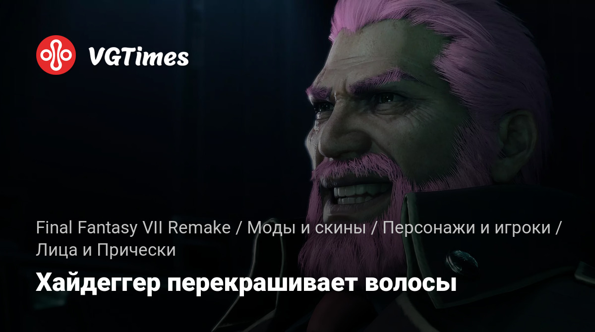 Простое перекрашивание волос Хайдеггера. Распакуйте файл в папку FFVIIRemakeIntergrade/End/Content/Paks/~mods.
