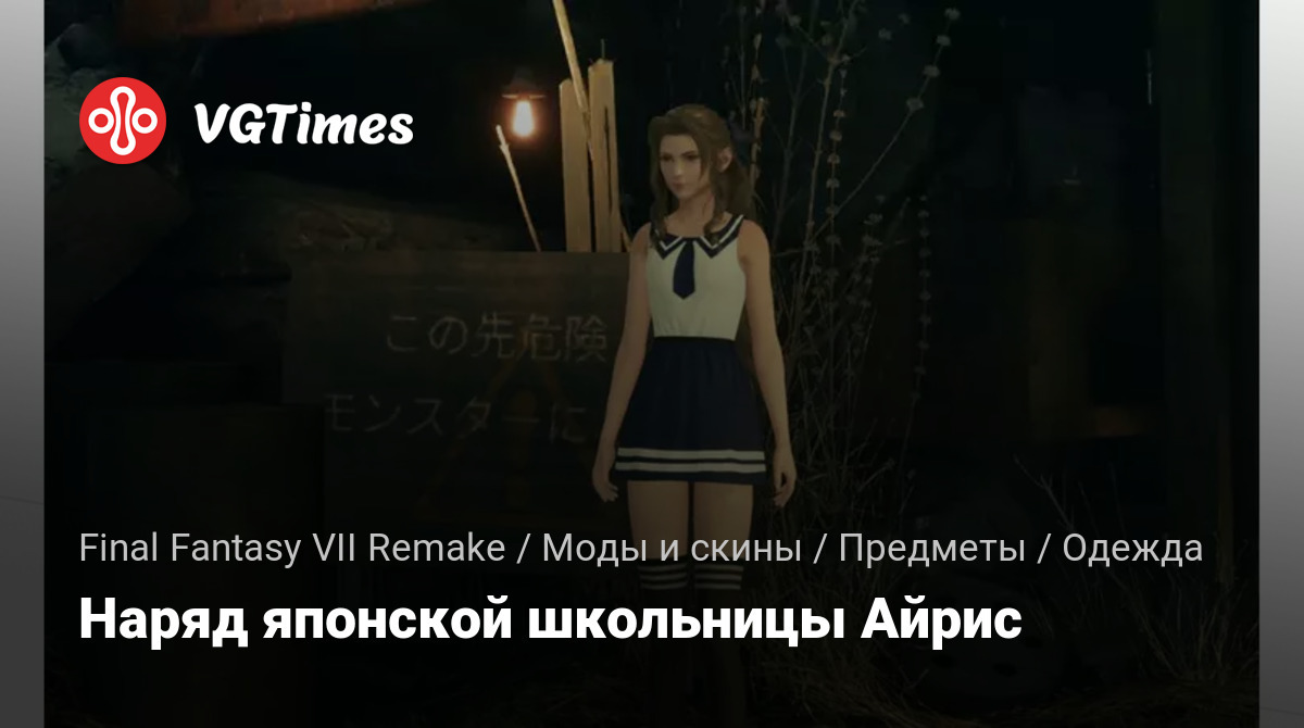 Меняет «Дешевое платье» Аэрис на наряд японской школьницы. Распаковать в /Final Fantasy VII Remake Intergrade/End/Content/Paks/~mods.