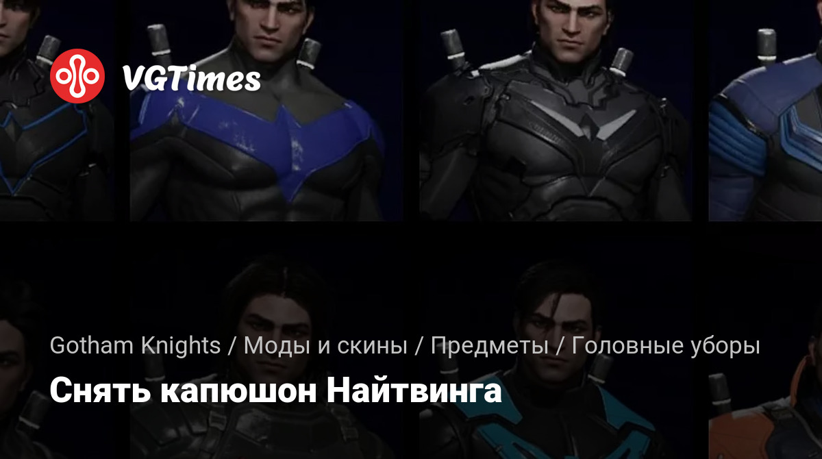 Удаляет капюшон почти для каждого костюма Найтвинга (также капюшоны трансмогрификации). Установка по этому пути Steam/StemLibrary/Steamapps/Common/Gotham Knights/Mercury/Content/Paks.