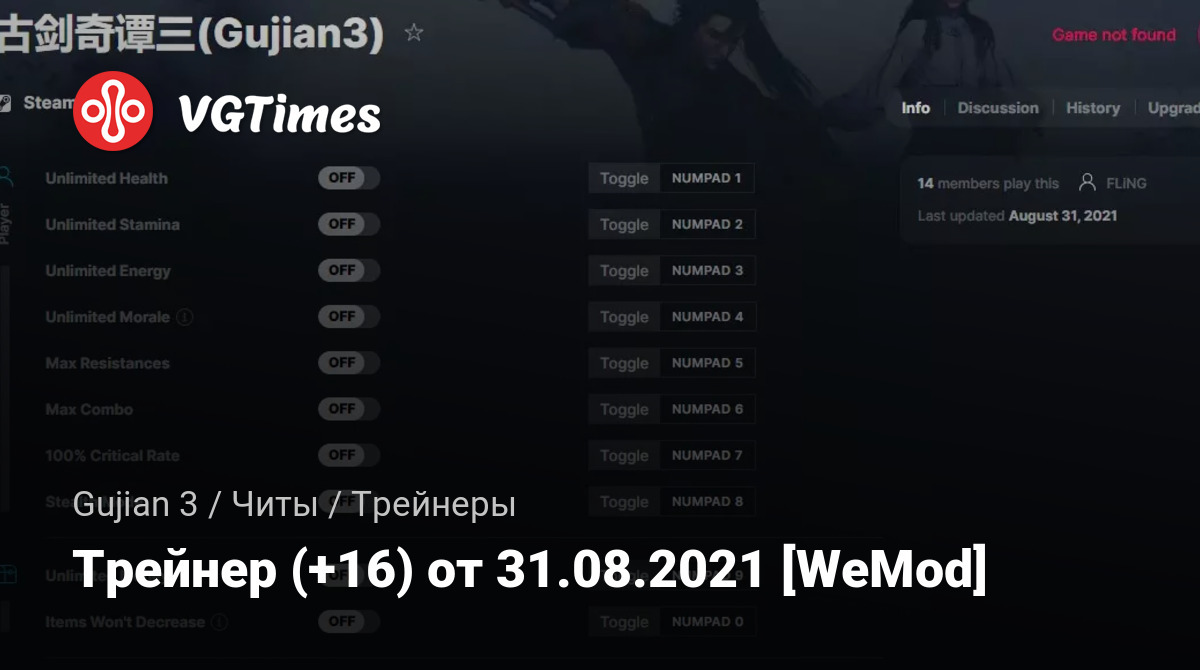 • Gujian 3 — Трейнер (+16) от 31.08.2021 [WeMod]