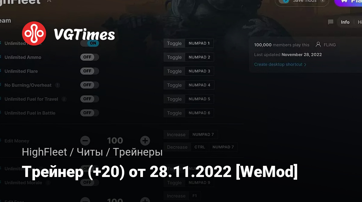 Трейнер (+20) от 28.11.2022 [WeMod]