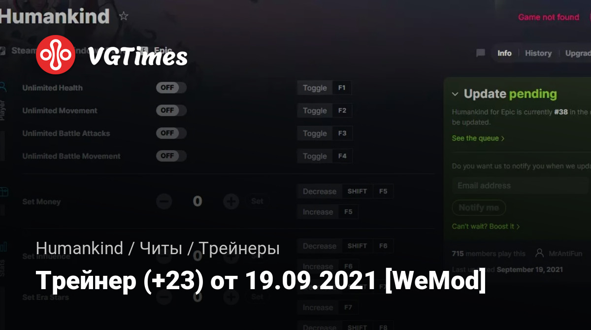 Для использования трейнера необходима установка системы WeMod (требуется онлайн подключение).