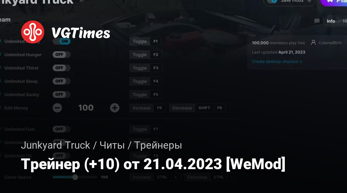 • Junkyard Truck — Трейнер (+10) от 21.04.2023 [WeMod]