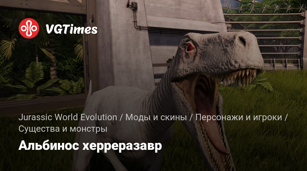 Изменяет базовый скин херреразавра, делая его альбиносом. Установка по этому пути / Jurassic World Evolution / Win64 / ovldata / ContentPDLC3 / Dinosaur.