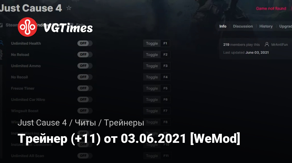 Трейнер (+11) от 03.06.2021 [WeMod]