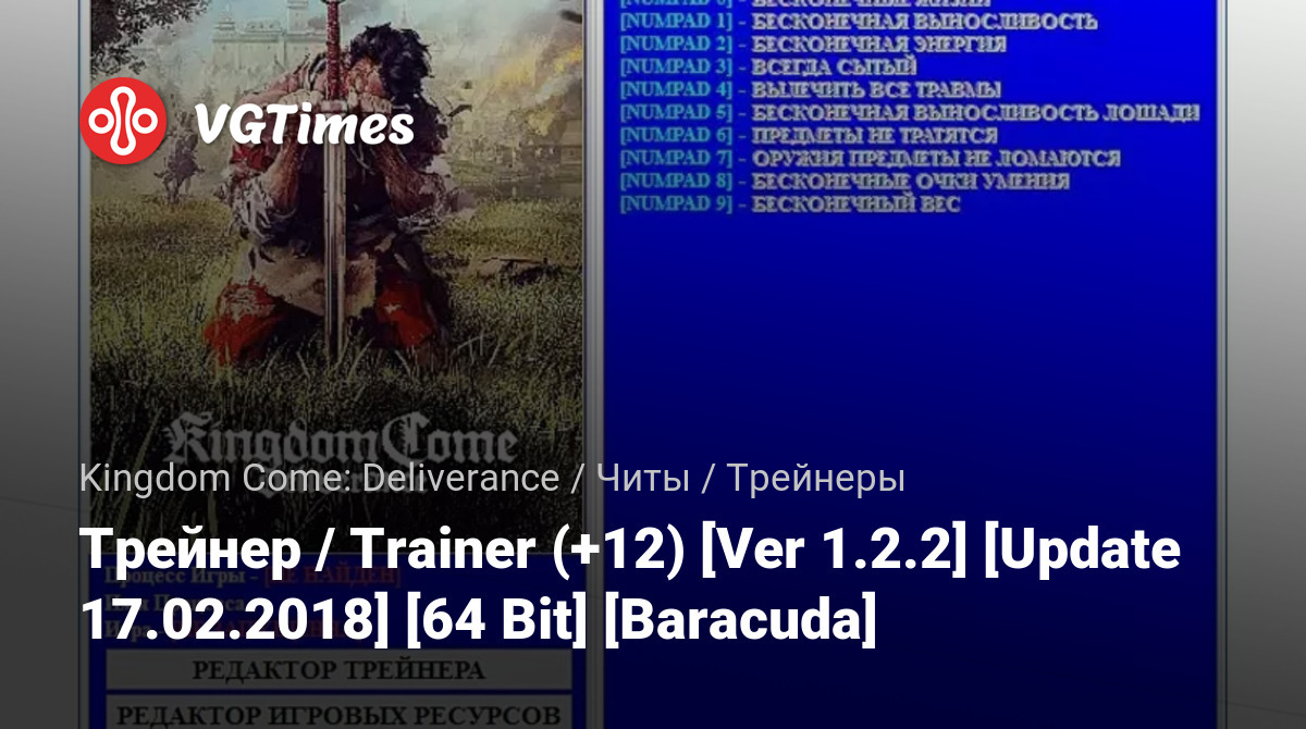 游戏 Kingdom Come: Deliverance 文件 训练器 Трейнер / Trainer (+12) [Ver 1.2.2] [Update 17.02.2018] [64 Bit] [Baracuda]