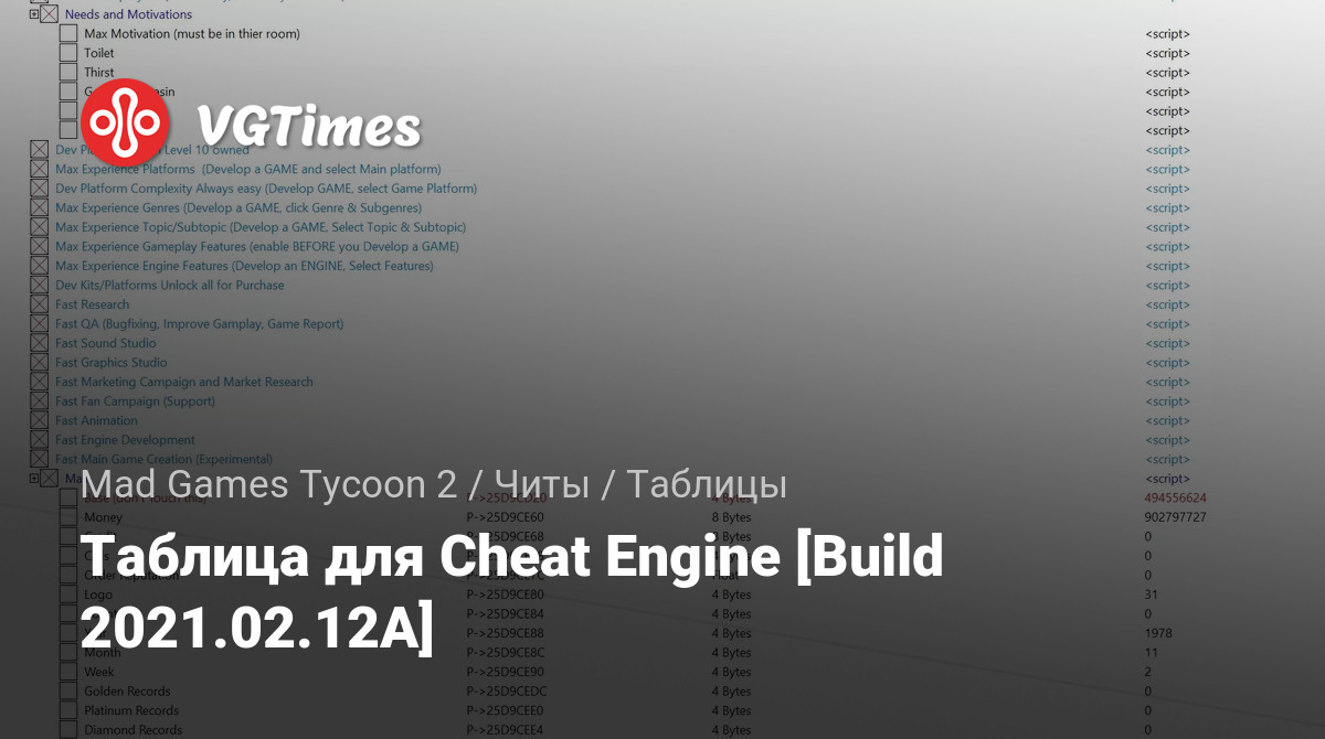 Таблица для Cheat Engine [Build 2021.02.12A]