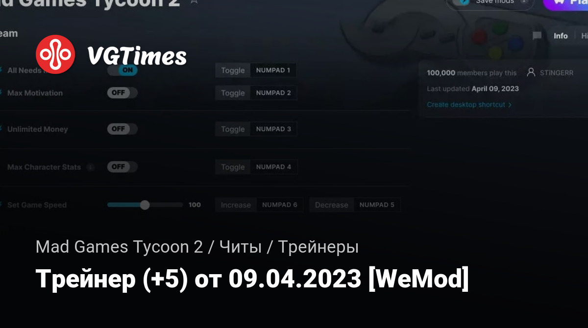 • Mad Games Tycoon 2 — Трейнер (+5) от 09.04.2023 [WeMod]