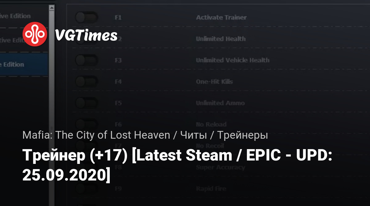 Эти Читы должны работать для Steam + EPIC версии Mafia: Definitive Edition.