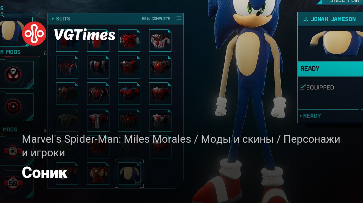 Добавляется слот для костюма и пользовательская иконка Соника.