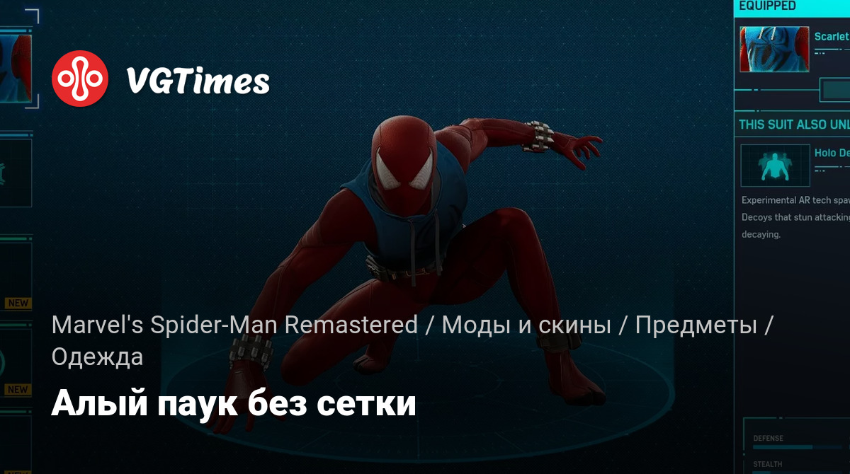 Удаляет материал, выглядящий как сетка, с костюма Алого паука. Я люблю Бена Рейли, но я не могу выносить материал, похожий на сетку, который они используют для модели Алого паука в игре.