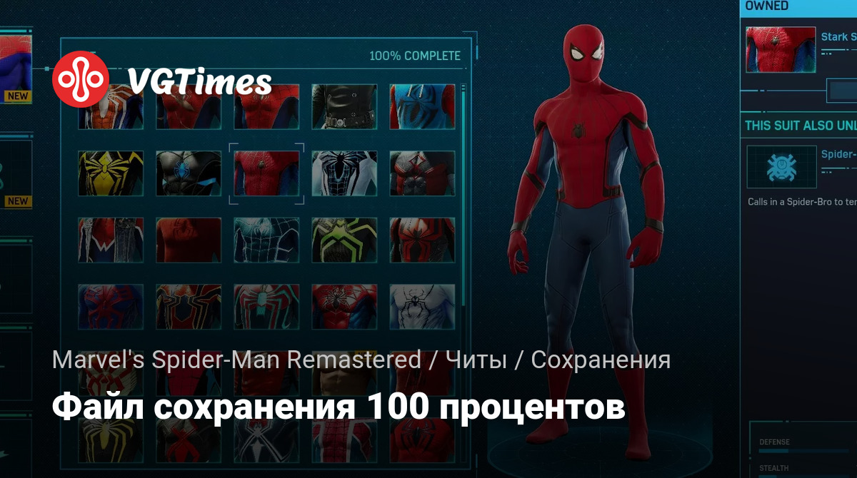 В этом файле сохранения прокачаны все гаджеты, каждый костюм в игре (кроме костюма esu, я был слишком ленив), каждый мод костюма и 100% прохождение всех 3 dlc и основной игры.