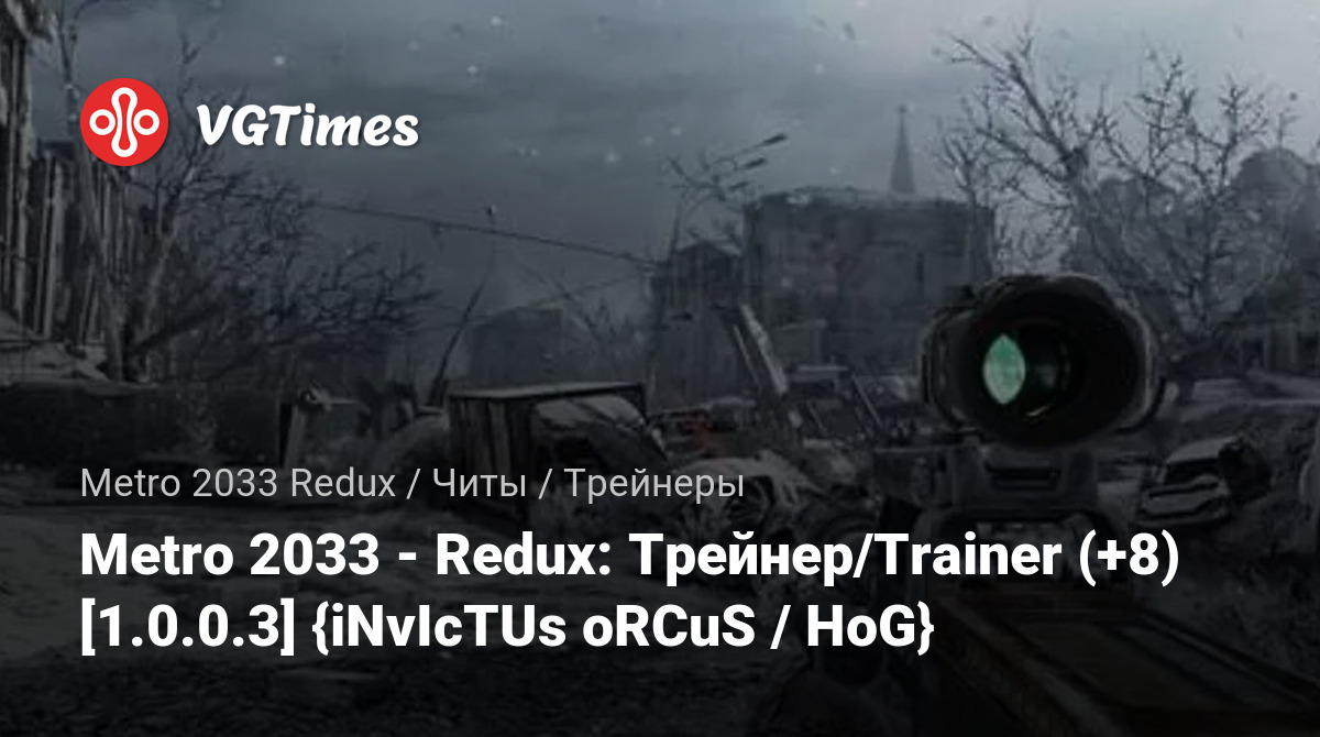 游戏 Metro 2033 Redux 文件 训练器 Metro 2033 - Redux: Трейнер/Trainer (+8) [1.0.0.3] {iNvIcTUs oRCuS / HoG}
