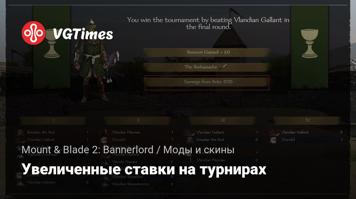 Небольшой мод для Mount & Blade 2: Bannerlord увиливает сумму вашей максимальной ставки во время участия турнира.