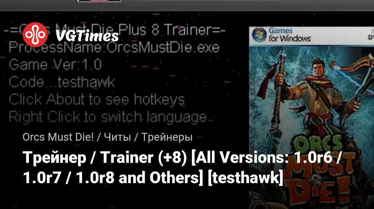 游戏 Orcs Must Die! 文件 训练器 Трейнер / Trainer (+8) [All Versions: 1.0r6 / 1.0r7 / 1.0r8 and Others] [testhawk]