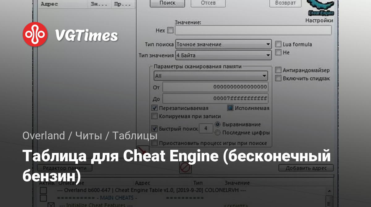 Таблица для Cheat Engine (бесконечный бензин)