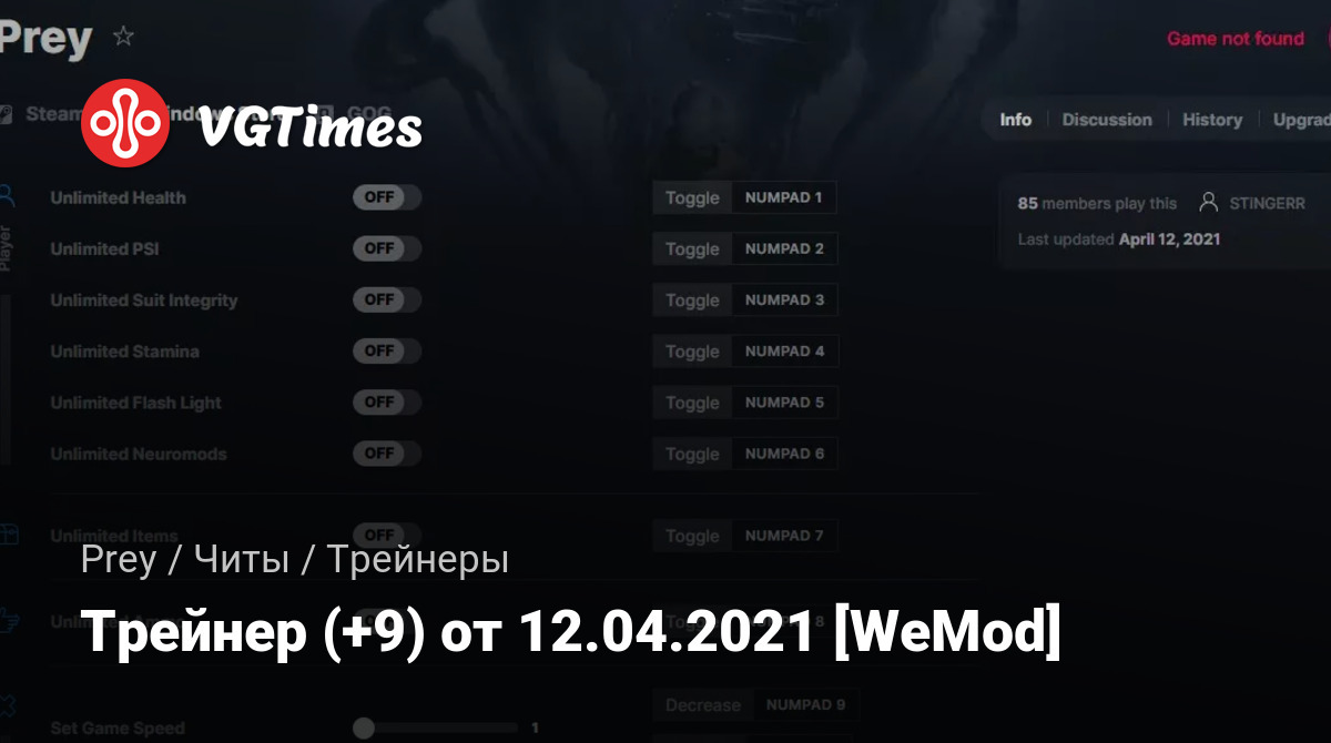Для использования трейнера необходима установка системы WeMod (требуется онлайн подключение).