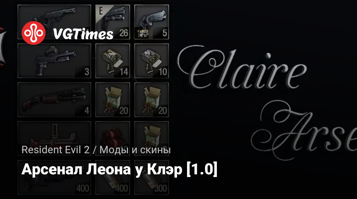 Всем тем, кому кажется, что оружие Клэр Редфилд (Claire Redfield) более хлипкое и малоэффективное против мутировавших врагов, по сравнению с убойными пушками Леона Кеннеди (Leon Scott Kennedy), был создан в подмогу данный мод. "Claire Arsenal" заменяет все оружие Клэр боевым арсеналом Леона, что позволяет нашей амазонке, и Вам вместе с ней, наслаждаться всей огневой мощью, которая для ее напарника является обычным делом.