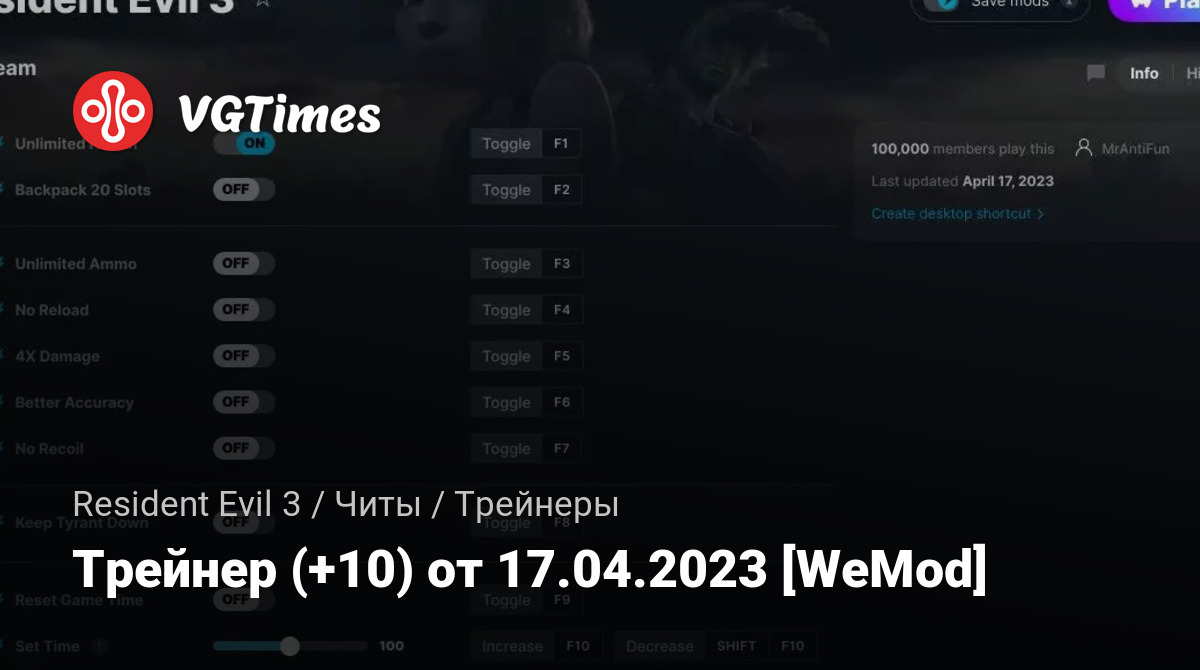 Для использования трейнера необходима установка системы WeMod (требуется онлайн подключение).