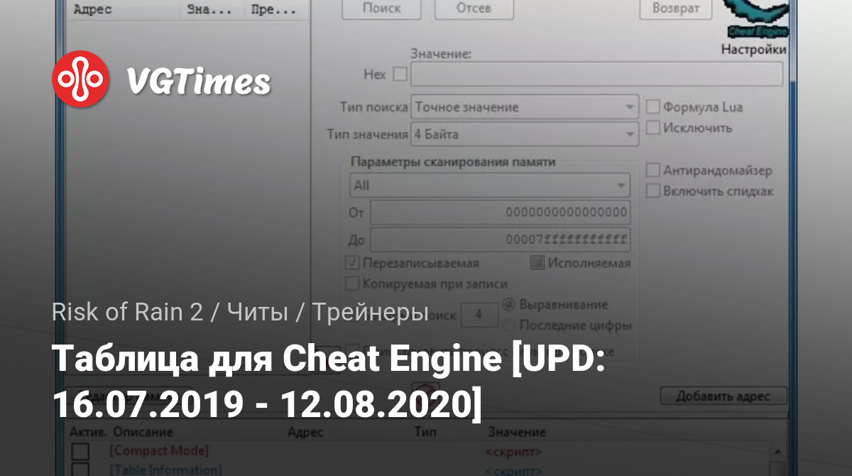 Таблица для Cheat Engine [UPD: 16.07.2019 - 12.08.2020]