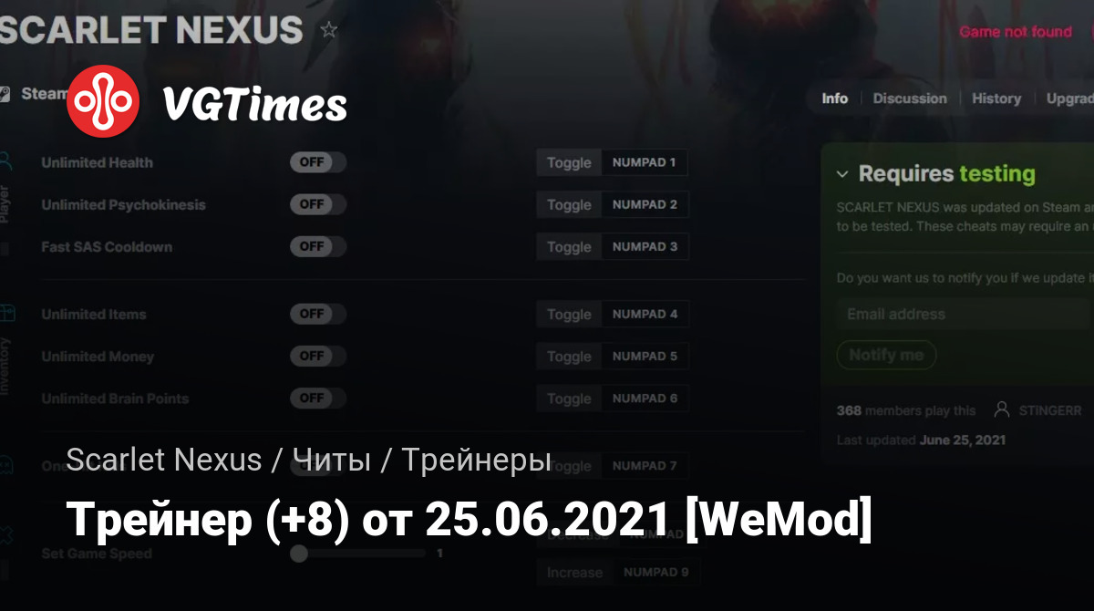 Для использования трейнера необходима установка системы WeMod (требуется онлайн подключение).