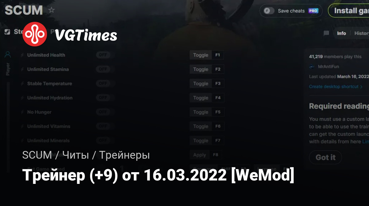 Для использования трейнера необходима установка системы WeMod (требуется онлайн подключение).