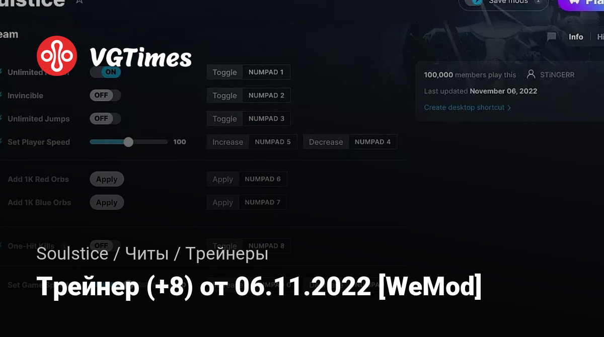 Трейнер (+8) от 06.11.2022 [WeMod]