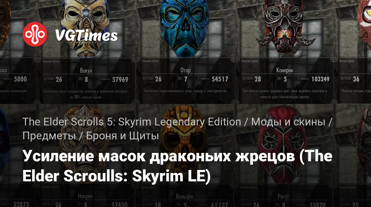 游戏 The Elder Scrolls 5: Skyrim Legendary Edition 文件 盔甲和盾牌 Усиление масок драконьих жрецов (The Elder Scroulls: Skyrim LE)