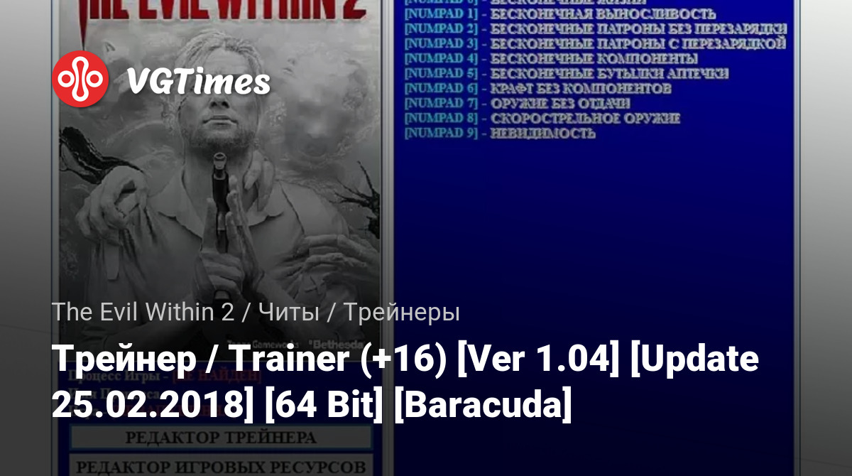 游戏 The Evil Within 2 文件 训练器 Трейнер / Trainer (+16) [Ver 1.04] [Update 25.02.2018] [64 Bit] [Baracuda]