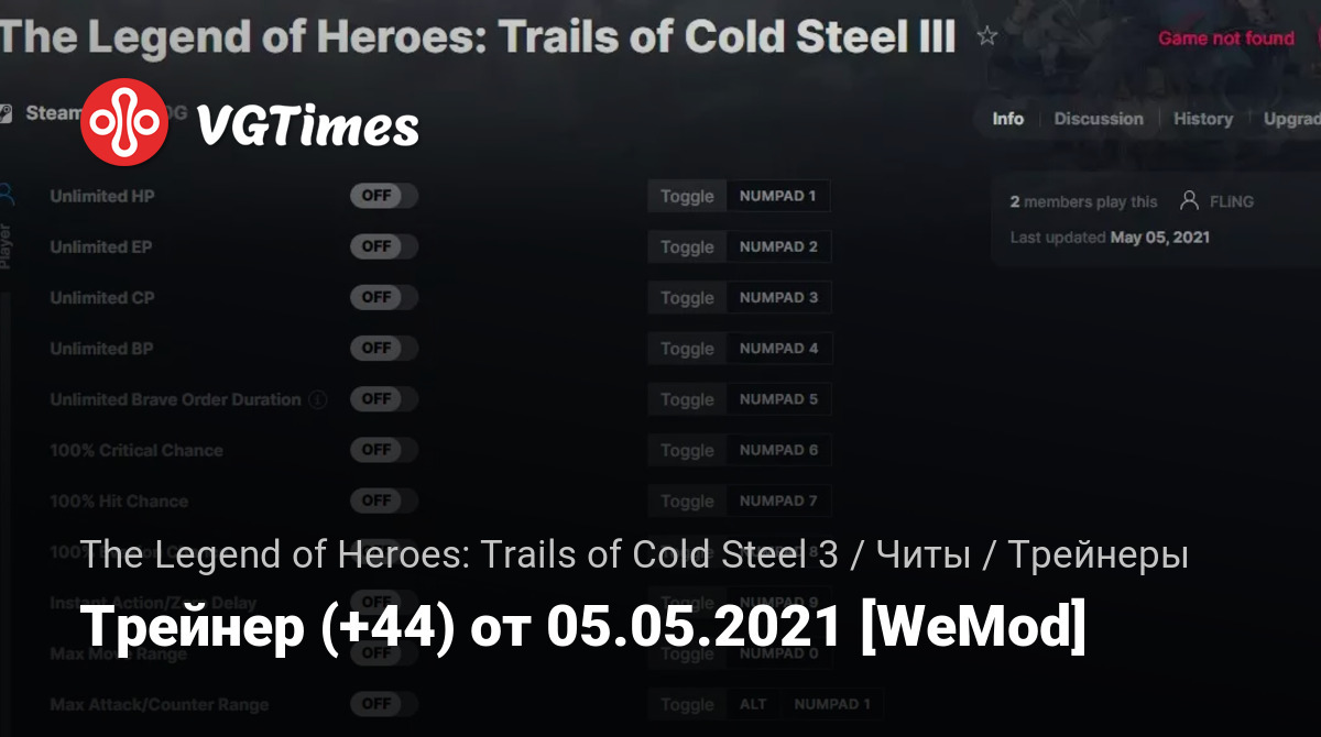• The Legend of Heroes: Trails of Cold Steel 3 — Трейнер (+44) от 05.05.2021 [WeMod]