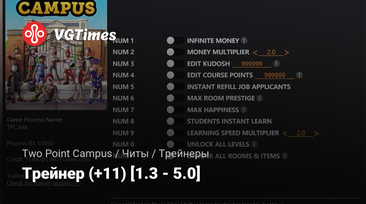 - Numpad 4: бесконечные курсовые очки;